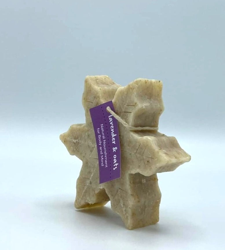 Each snowflake soap is pressed out and etched by hand on both sides.